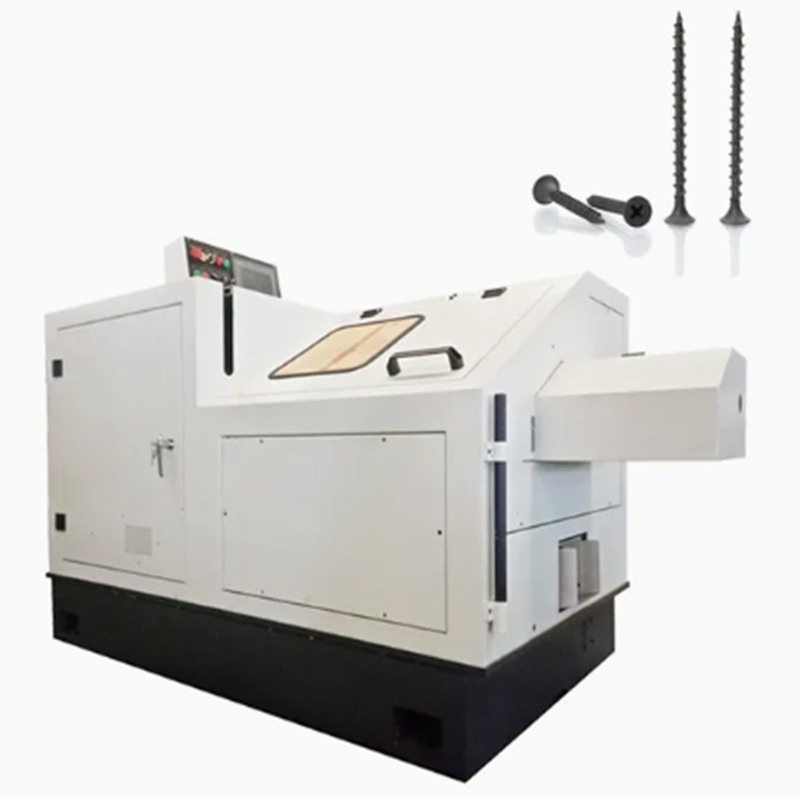 Máy làm vít bằng thép không gỉ được thiết kế đặc biệt để sản xuất vít thép không gỉ. Đầu tiên, dây thép không gỉ được đưa vào máy, sau đó được cắt theo chiều dài mong muốn. Tiếp theo, đầu vít được ép ra bằng khuôn và các sợi được cuộn lên nó.